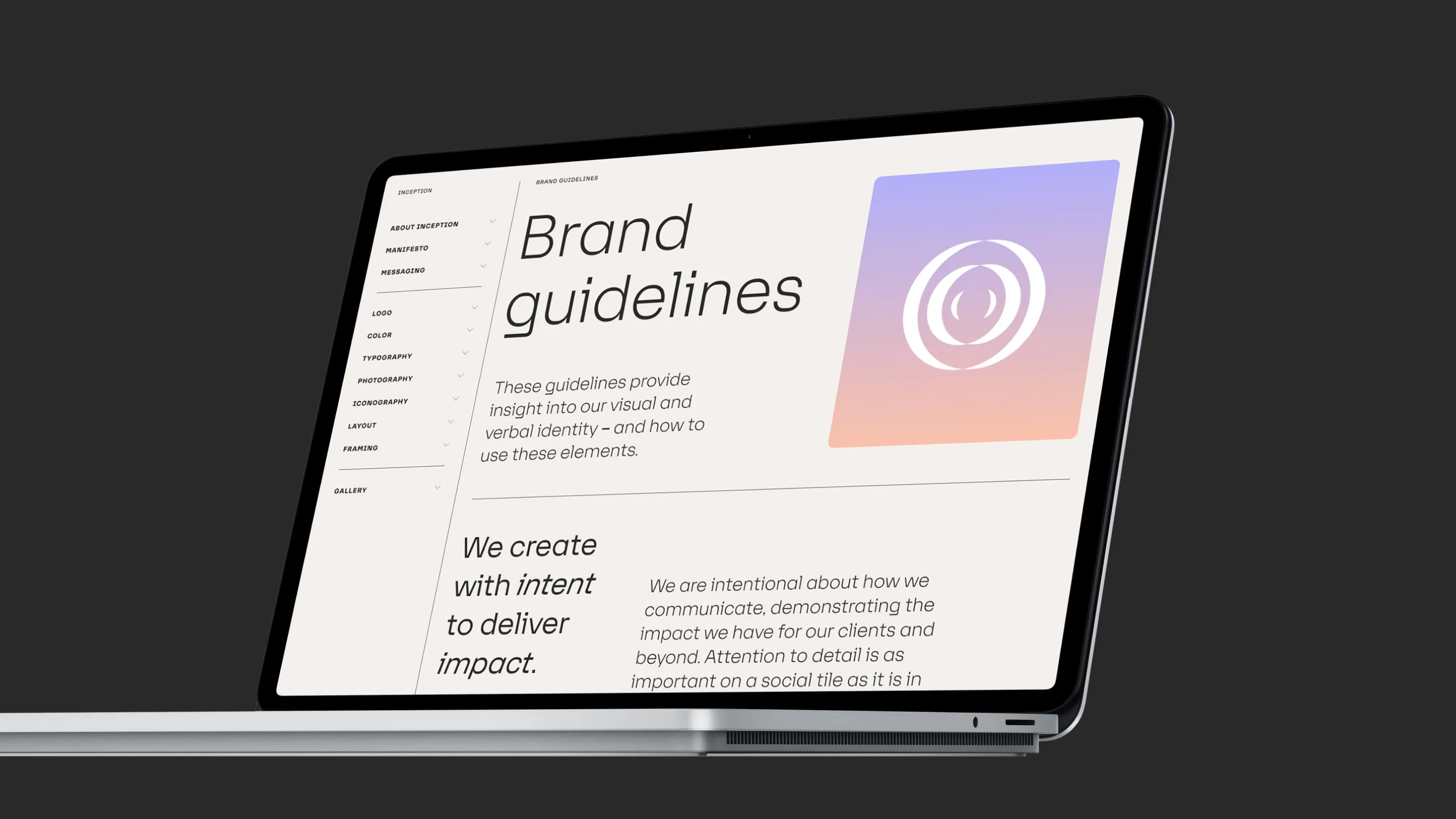 Photographic treatments and typographic details add richness and clarity, while the overall aesthetic balances technical sophistication with warmth and accessibility. The result is a visual language that reflects how Inception works: intelligent, focused and human.
